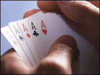 When you are playing Aces & Faces, the goal is to get a poker hand consisting of five cards which, when combined, create a winning hand. The biggest payouts with Aces & Faces are associated with the best hands. When you are dealt your hand at the beginning of the game in Aces & Faces, you get to decide what cards you are going to hold and what cards you want to discard. The discarded cards are then replaced by new cards to make up your five card hand. You do have the option of discarding your entire hand and replacing it as well. You can only discard and replace cards in Aces & Faces one time with each hand dealt. Aces & Faces Power Poker differs from traditional video poker offerings. When you are playing Aces & Faces Power Poker you are given four hands of five cards. This game offers spectacular payouts when you make hand combinations containing a total of four identical face cards or Aces. Face cards include cards with "faces" on them like the Jacks, the Queens, and the Kings. No wilds are played in Aces & Faces Power Poker. The video poker game Aces & Faces Power Poker allows you to play poker with the video machine as your opponent. Instead of playing cards at a traditional poker table and betting your hand against other players, you are playing against the machine. You are still given five cards to start with in each hand. You also get to choose which cards you want to discard and which cards you want to maintain in your hand. You will want to hold any Aces or Face cards and to discard the rest of the hand. Your goal is to try to get replacement cards that are Aces or Faces. The total number of cards in your hand remains at five.